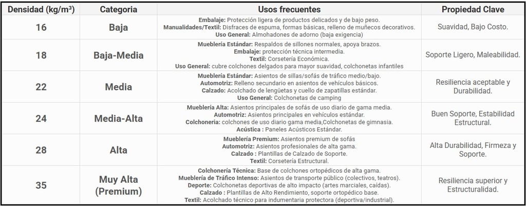 Versatilidad de Densidad: Podemos ajustar la "receta" química para crear desde espumas muy suaves para almohadas hasta espumas de alta densidad con distintas caracteristicas mecanicas.